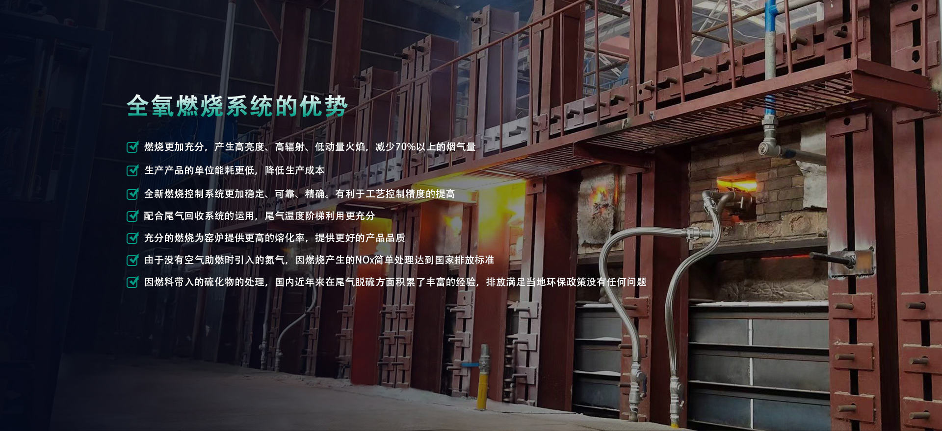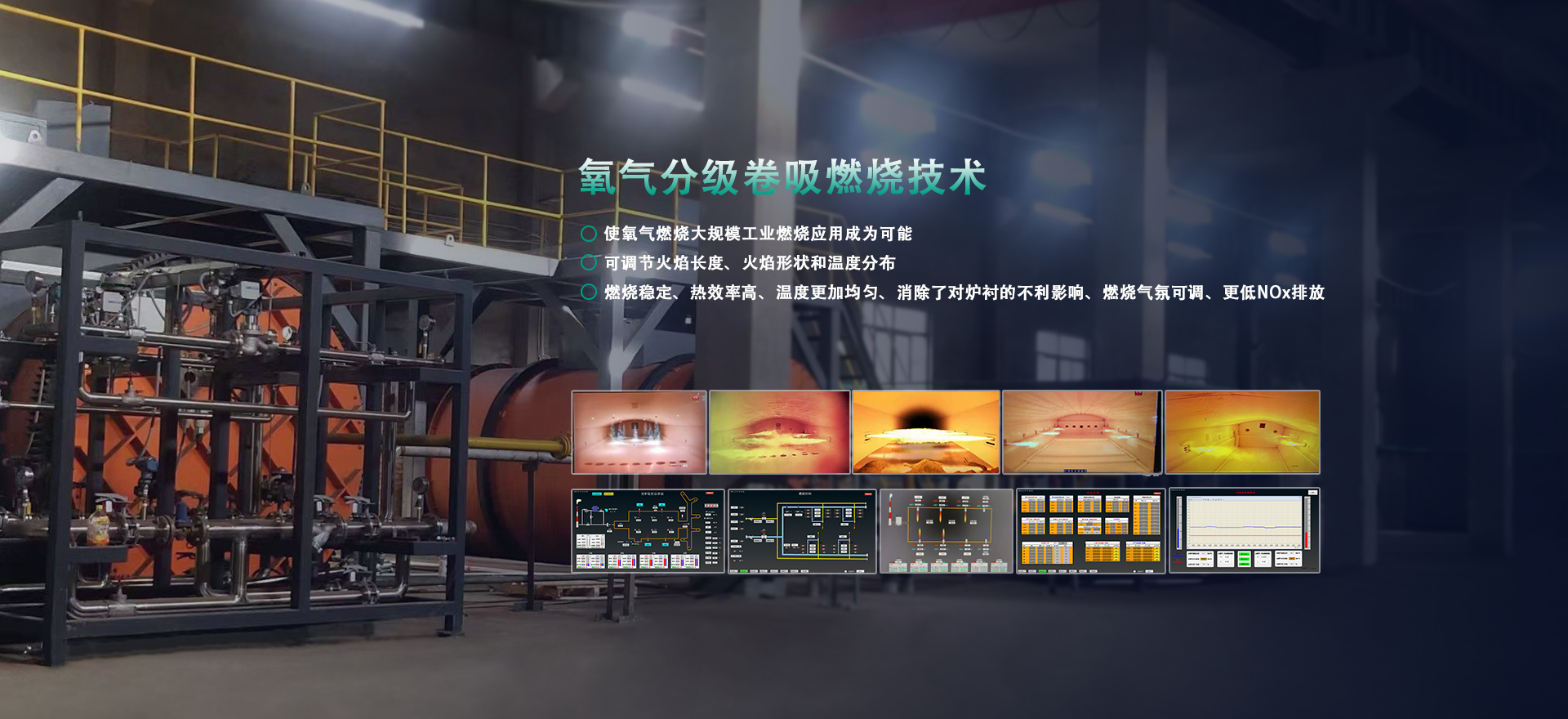 提供方案:成套熱能解決方案。高溫領域,采用全氧或富氧燃燒系統,包含全氧燃燒器、燃氣/氧氣管路系統以及自動化控制系統